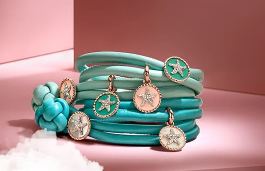 В основе коллекции – знаковые украшения – стильные кожаные браслеты Tirisi в виде шнурков, выполненные в различных цветовых решениях и фактурах кожи и идеально завершающие любой образ в стиле casual. Они дополняются изюминкой дизайна – драгоценными застёжками, выполненными из белого, желтого или розового золота, а также серебра. Некоторые изделия дополняют бриллианты, которые придают комплекту торжественность и изысканное сияние!